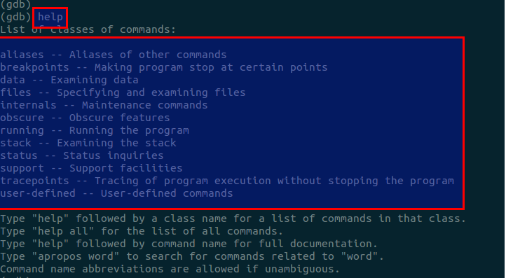 gdb是做题的有利工具,我们可以通过help查看gdb指令的种类