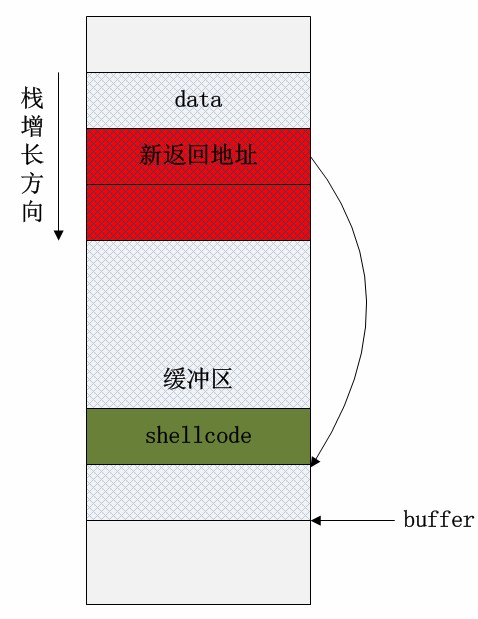 通过计算返回地址内存区域相对于buffer的偏移,并在对应位置构造新的地址指向buffer内部二进制代码的其实位置,便能执行用户的自定义代码!这段既是代码又是数据的二进制数据被称为shellcode,因为攻击者希望通过这段代码打开系统的shell,以执行任意的操作系统命令。