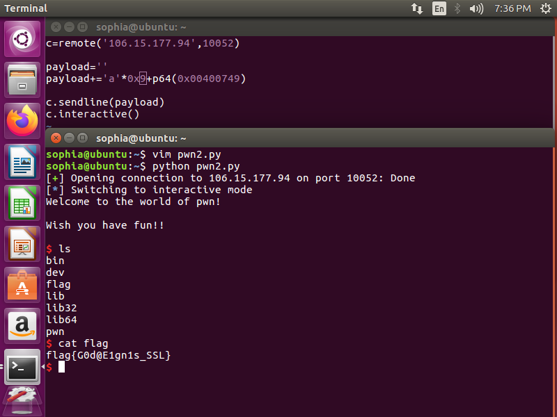 发现这就是一个很简单的栈溢出,读入0x200字节的buf,然后就直接return 0了。
